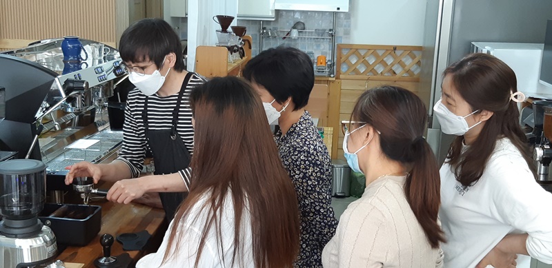 현재 16분이 바리스타 교육을 받고 있지요!